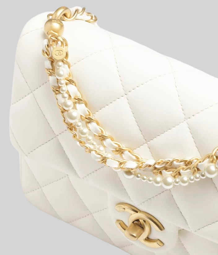 Shiny Lambskin, Imitation Pearls & Gold-Tone Metal