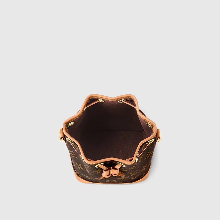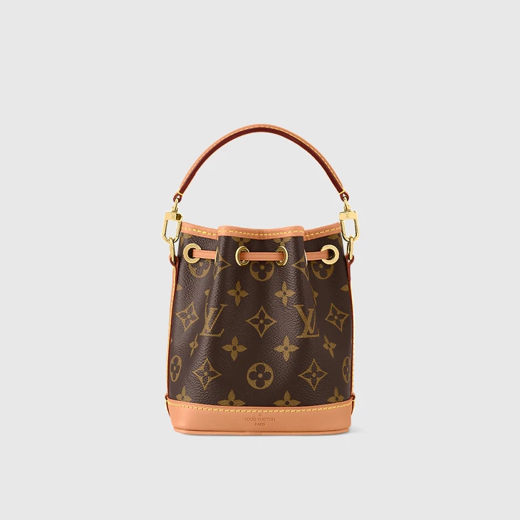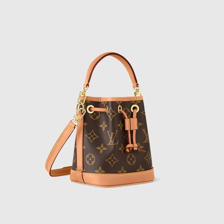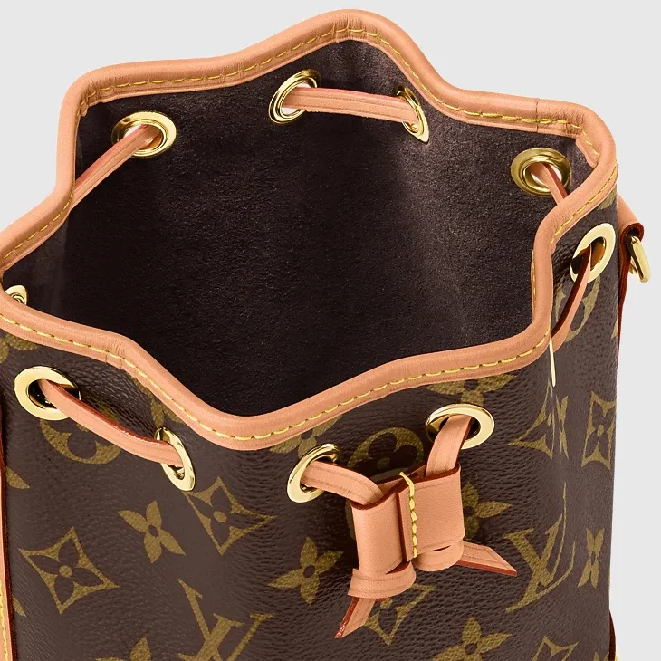 The Nano Noe is a miniature version of the iconic Noe bag, created in 1932. Crafted from Monogram canvas with trim in natural cowhide leather, this tiny Nano Noe combines heritage with modern functionality. Its removable handle and removable, adjustable strap offer multiple carry options, while it is spacious enough to hold essentials including keys, a card holder and a smartphone.