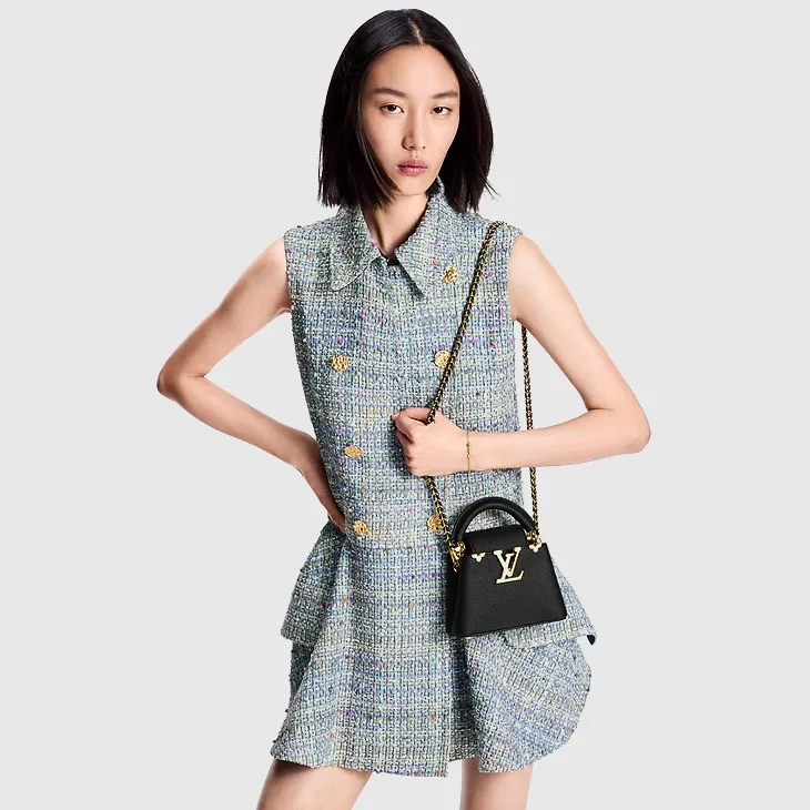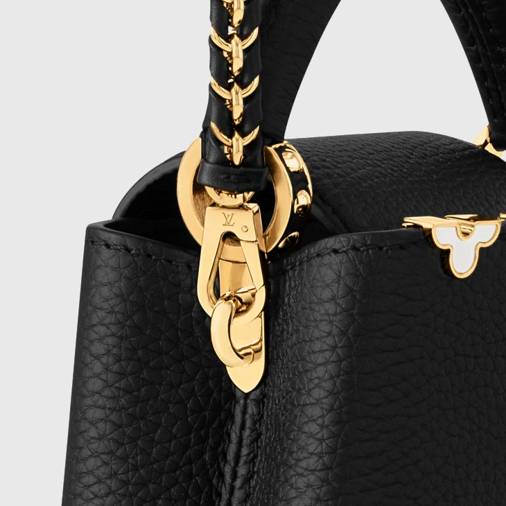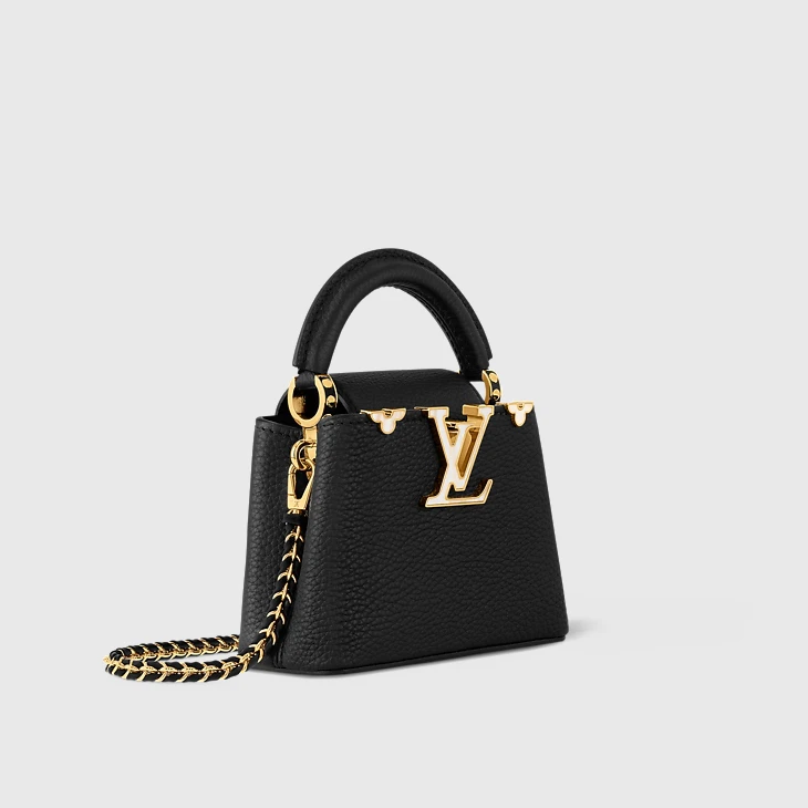 Part of the Capucines Flower Crown collection, the Capucines Nano in grained Taurillon leather is notable for its jewel-like embellishment. Two Monogram Flowers with a shimmering mother-of-pearl finish surround the emblematic LV Initials signature. A removable chain adds to the refinement of this small bag, which will transition seamlessly from day to evening.