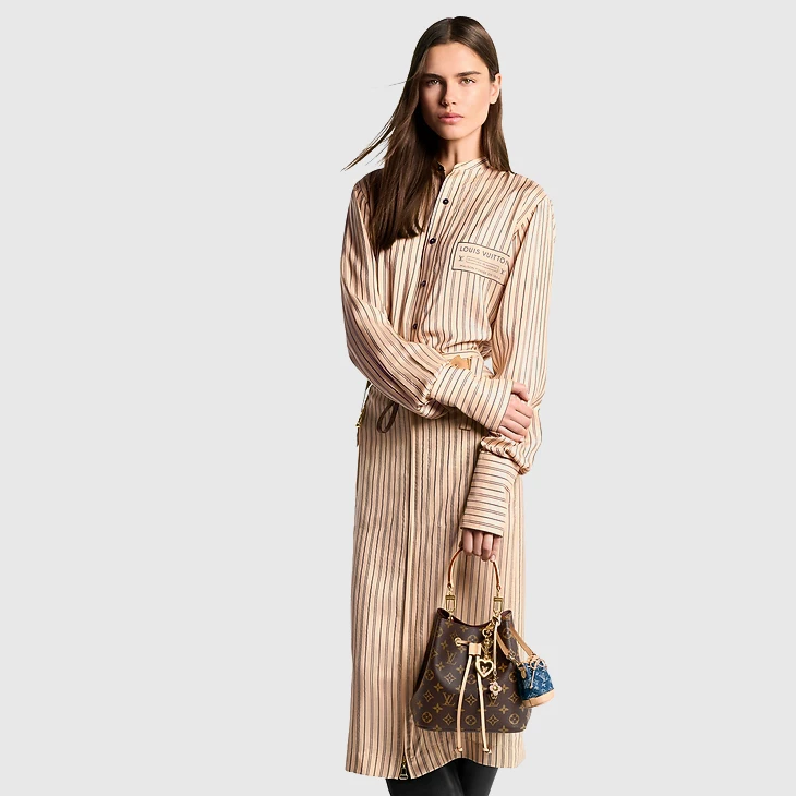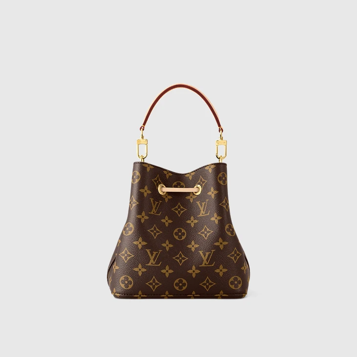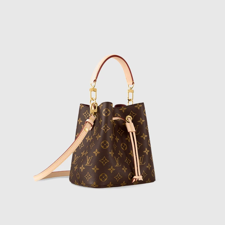 The NeoNoe BB in Monogram canvas with natural leather trim is a smaller interpretation of the House’s iconic NeoNoe bucket bag. Spacious enough to hold essentials such as keys, earphones, and an smartphone, it features a leather drawstring to close the bag and keep belongings secure. A removable handle and detachable, adjustable strap offer multiple carry options.