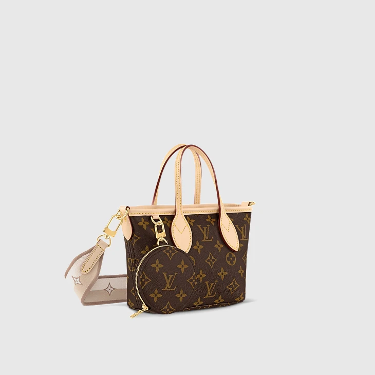 This season the House’s forever favorite, the Neverfull, gets reinvented as a mini-tote: the Neverfull BB handbag. This scaled-down version features an adjustable and detachable textile strap as well as a playful coin purse attached to a D-ring. It is just the right size for small essentials like a smartphone and compact wallet.