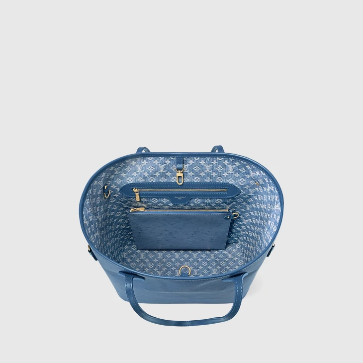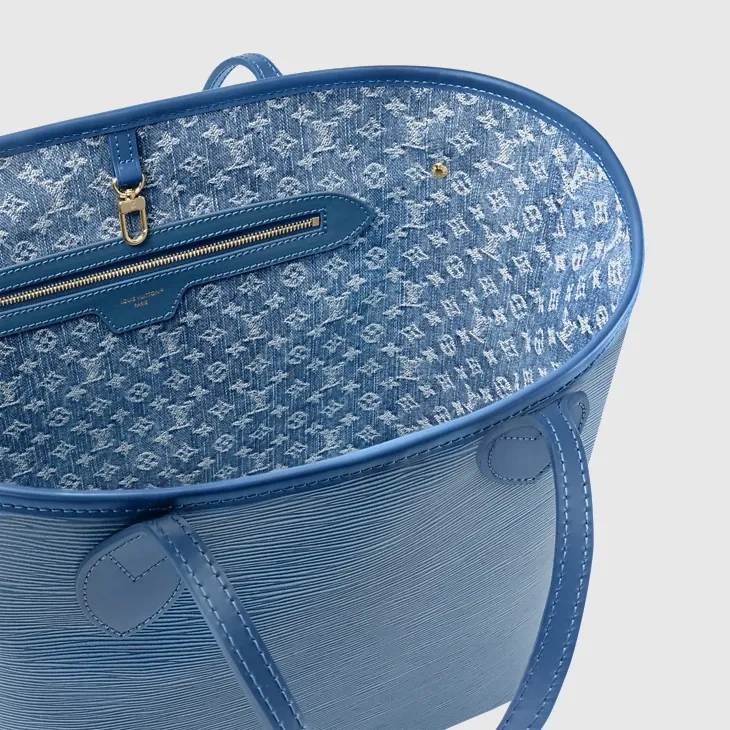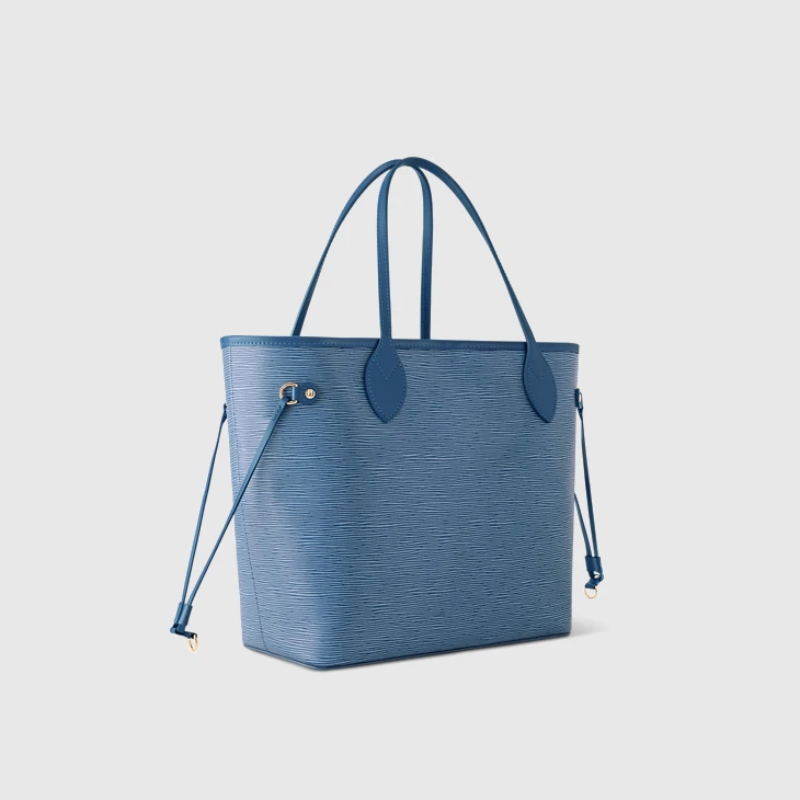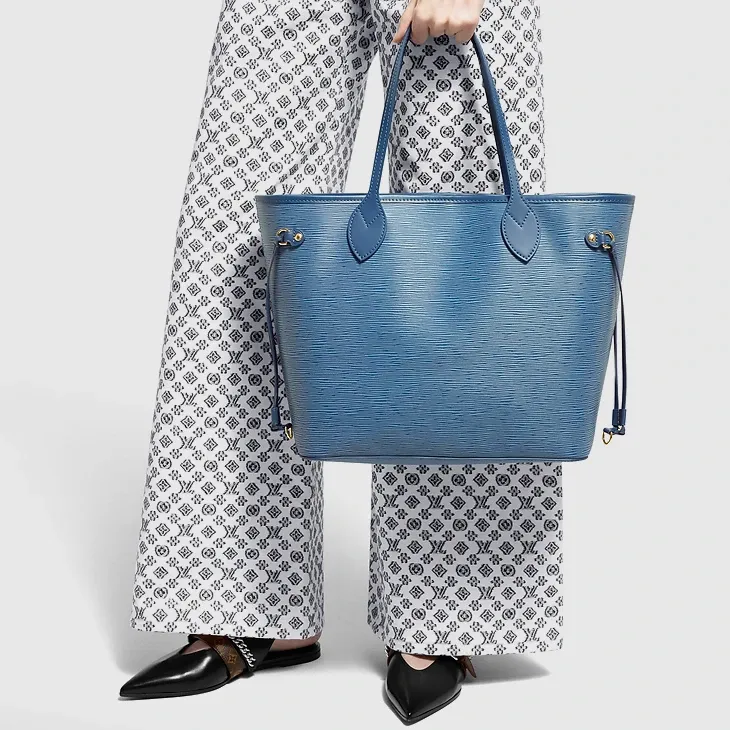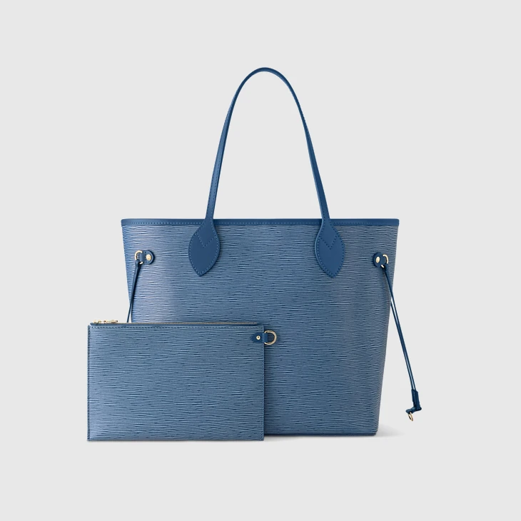 Designed with a cool denim-blue finish, the Neverfull MM handbag strikes the balance of directional and timeless. It is crafted from signature Epi leather adorned with gold-toned hardware.The interior offers a removable monogram zipped pouch, and is lined in Monogram denim. Use the side laces to cinch the silhouette, wearing it over the shoulder or carried by hand.