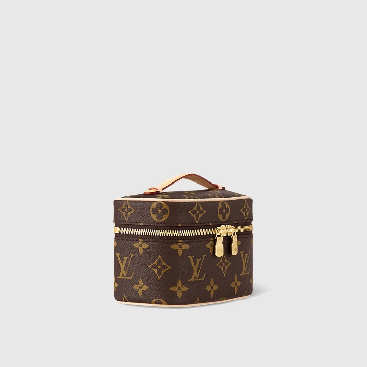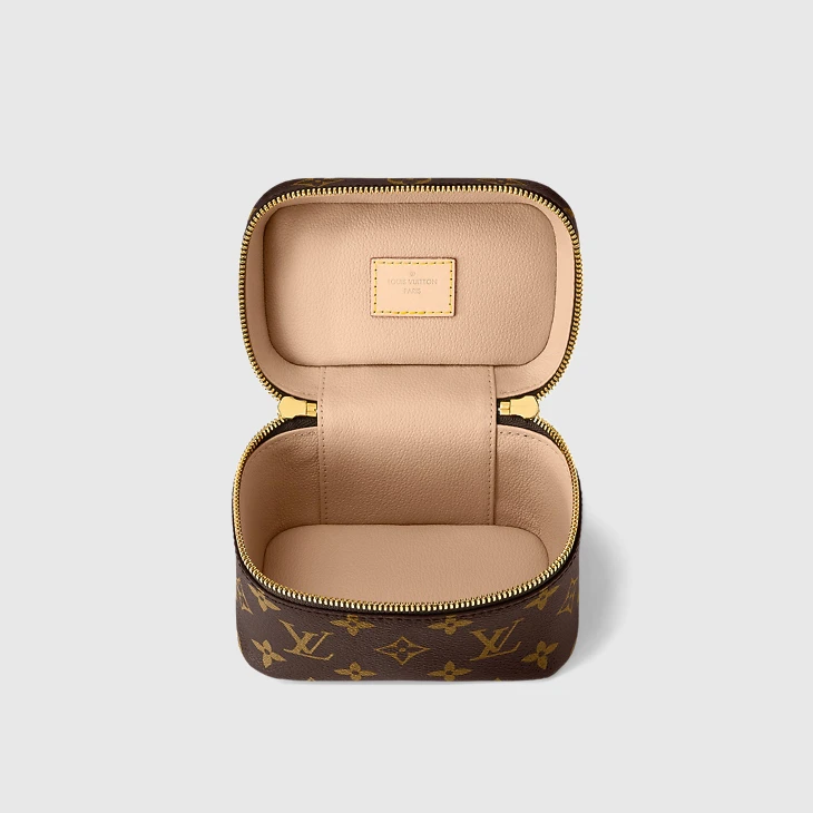 Small and surprisingly roomy, the Nice Nano vanity case can be used to store beauty essentials like nail polish or lipstick in a bathroom, or as a bag inside a bag to keep small items organized. Fashioned from Monogram canvas with a top handle that flattens for easy packing, it easily fits into even tight spaces.