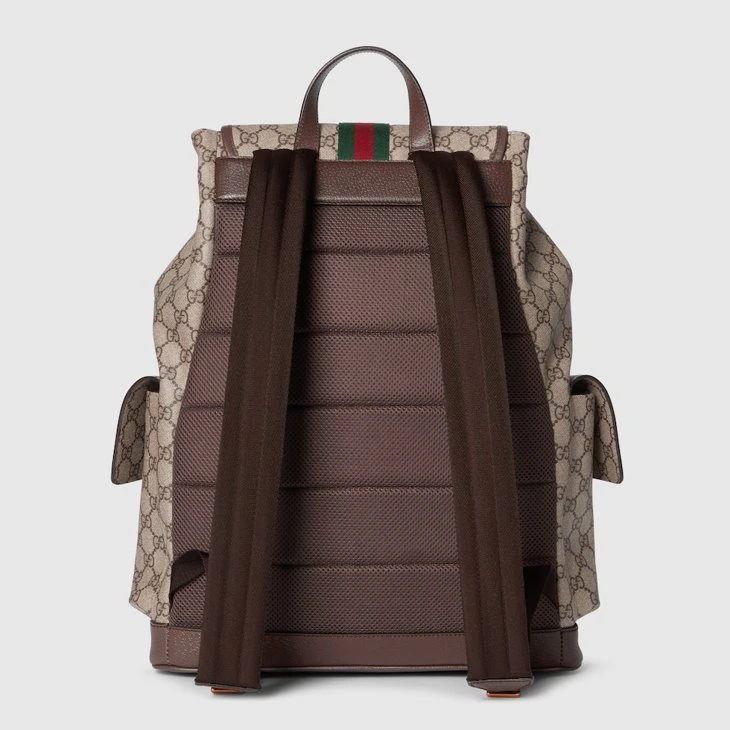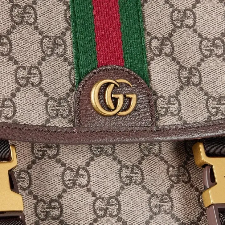 The Ophidia collection evokes the House’s heritage with the signature Web stripe and Double G emblem in light gold-toned finish. The styles are crafted from soft GG Monogram coated fabric, featuring green cotton lining inside.Beige and dark brown GG Monogram coated fabric