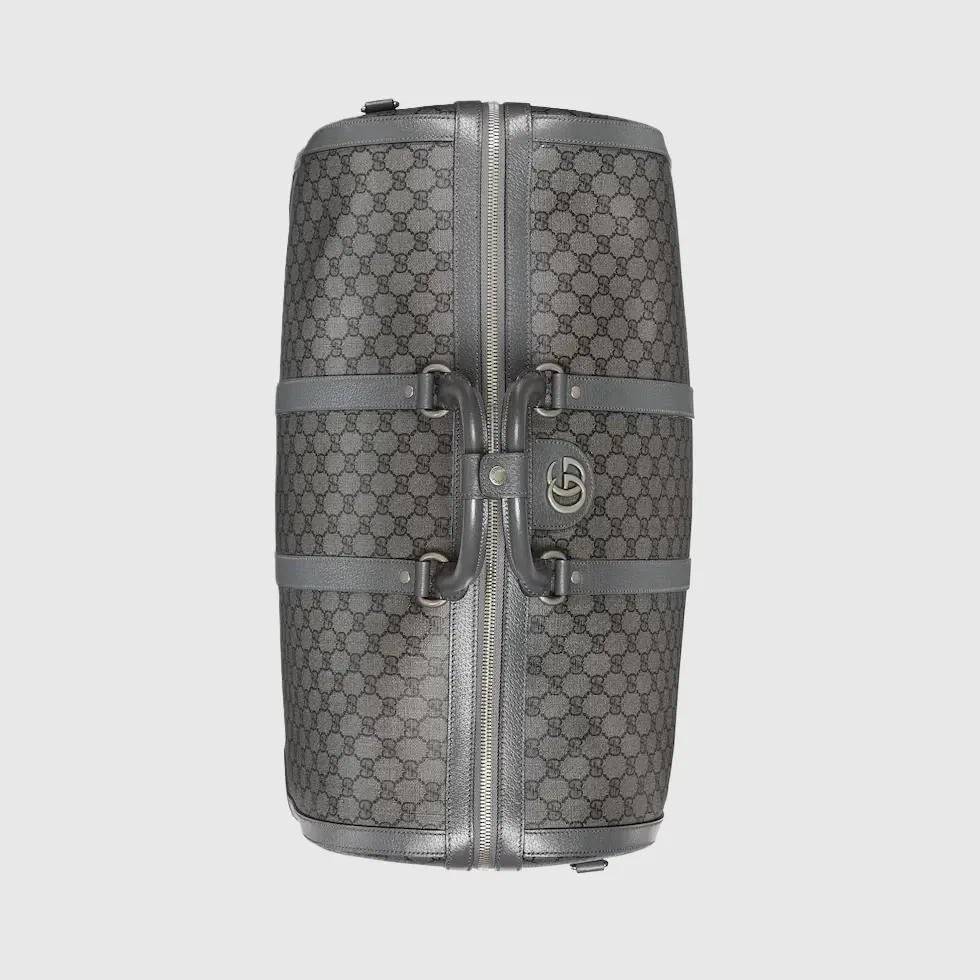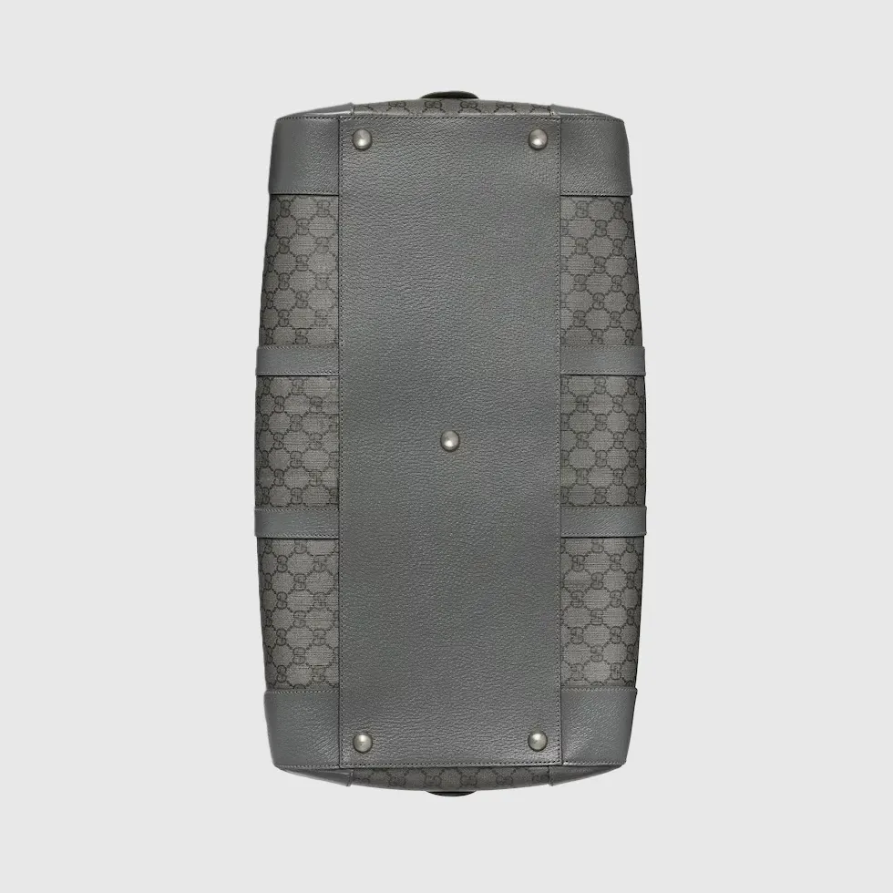 The Gucci color palette is constantly evolving to include more refined hues. New colorways and combinations result in the reinvention of signature styles with a contemporary feel. This Ophidia duffle bag appears in an elegant grey and black variation of the GG Supreme canvas, complete with a palladium-toned Double G hardware.Grey and black GG Supreme canvas
