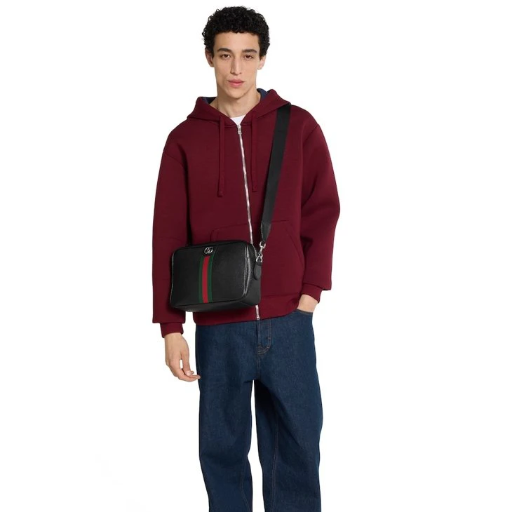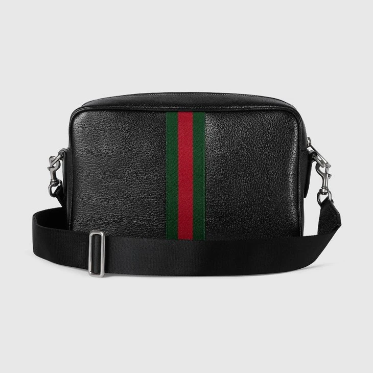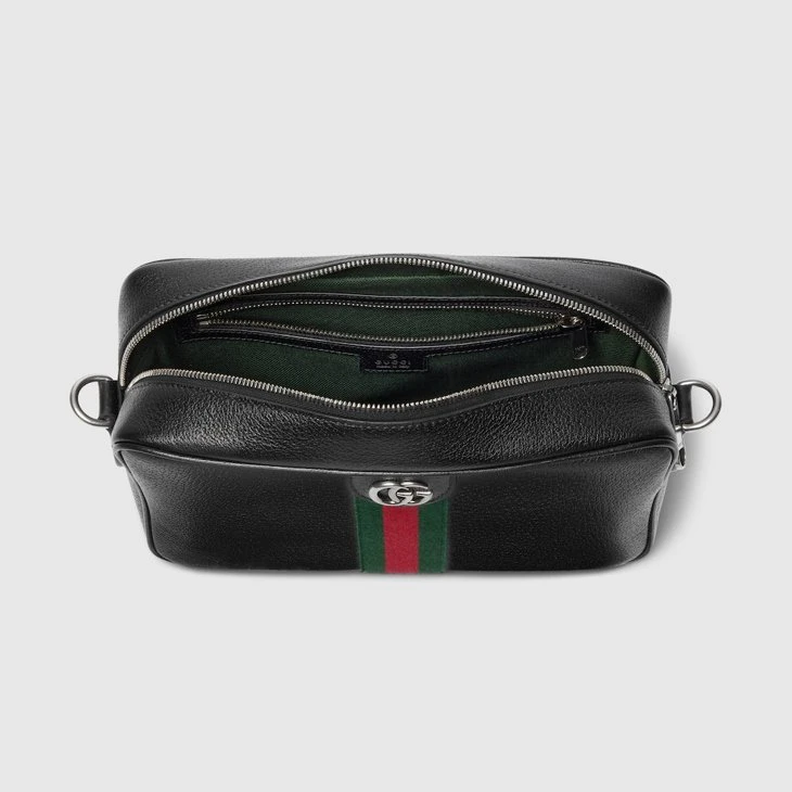 Ophidia in black features sophisticated leather, elevating signature silhouettes with new functions. This crossbody bag is presented in a soft leather with natural shine and is defined by a Double G and a Web detail.Black soft leather with natural shine