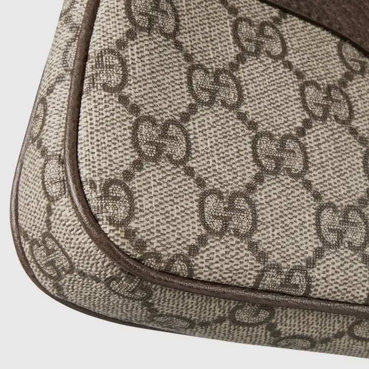 The world of Ophidia continues to evolve, incorporating new shapes and materials each season. Guccio Gucci’s everlasting monogram continues to enrich new designs with a logo feel. This mini bag is presented in the historical GG Supreme canvas, complete with the Double G hardware.Beige and ebony GG Supreme canvas