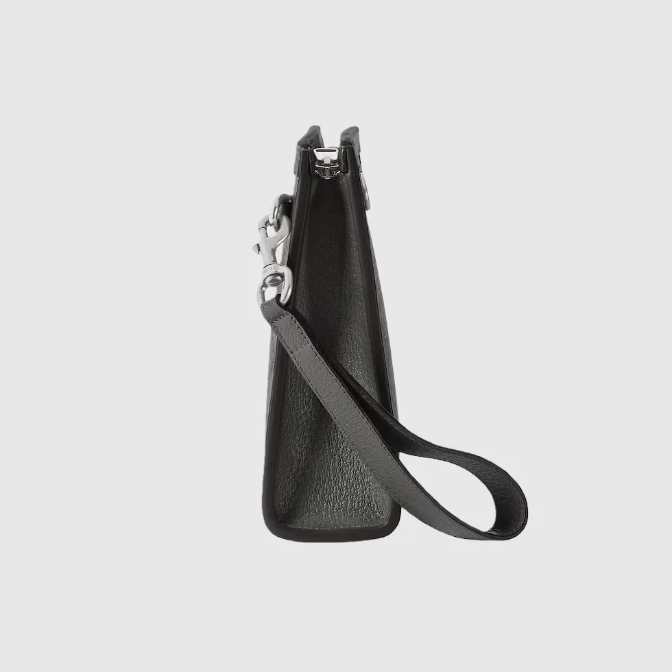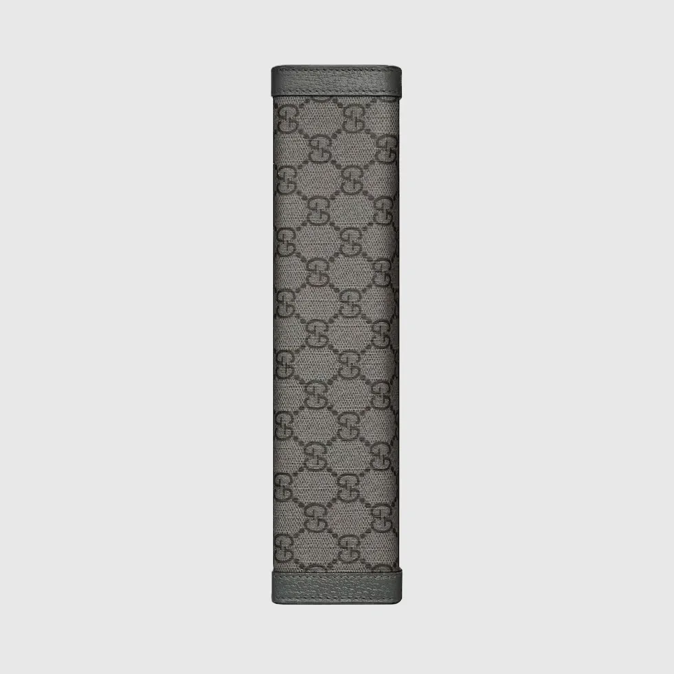 Gucci heritage meets contemporary design with the continuation of Ophidia. Crafted in a grey and black GG Supreme canvas, this pouch silhouette is defined by the palladium-toned Double G hardware.Grey and black GG Supreme canvas