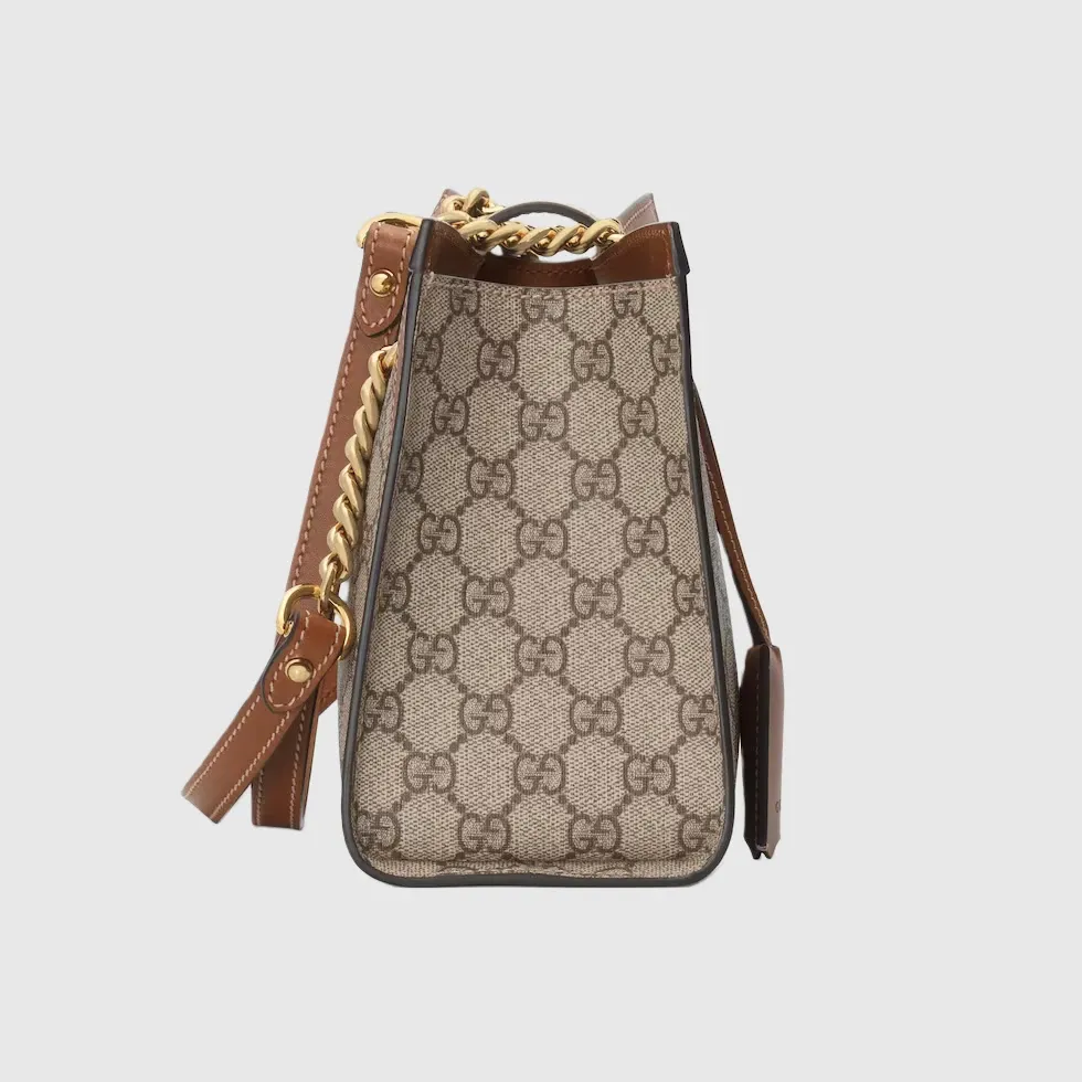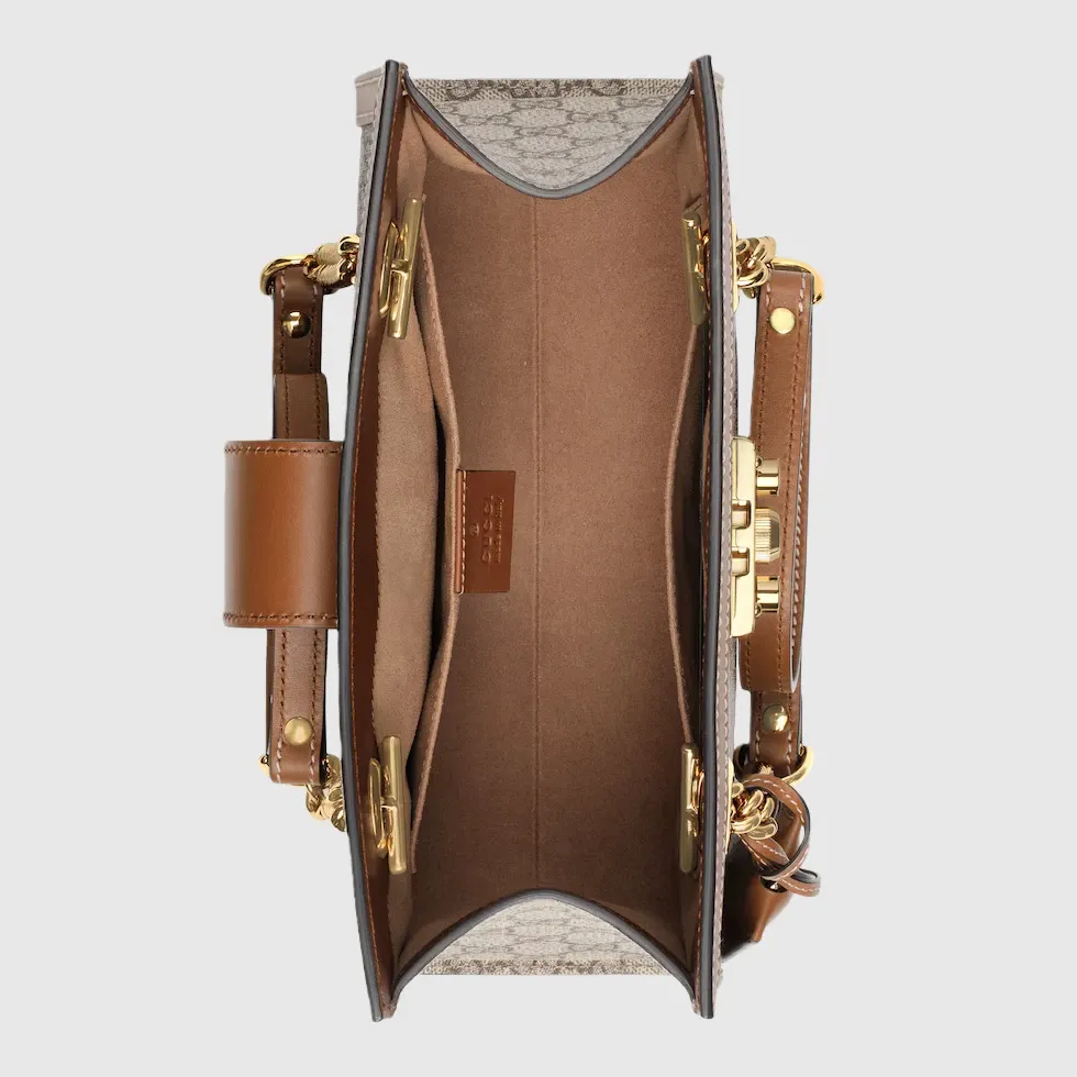A structured tote bag in GG Supreme with a strap that secures with a key lock closure pulled straight from the archives. The key is placed in a detachable leather key case.Beige/ebony GG Supreme, with brown leather detail