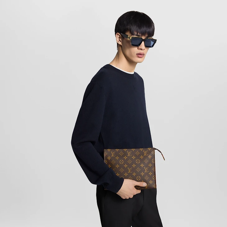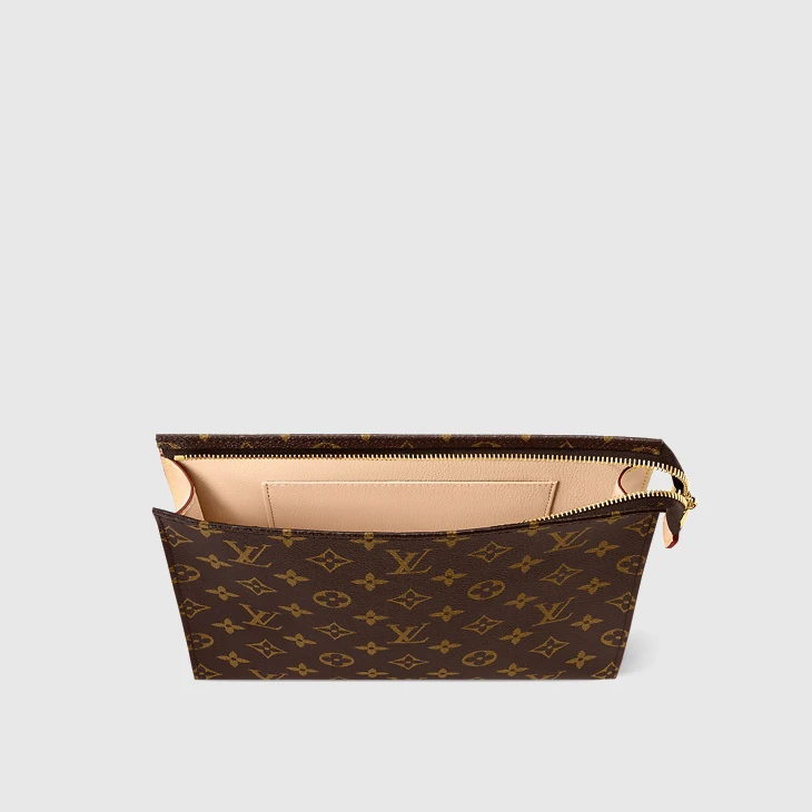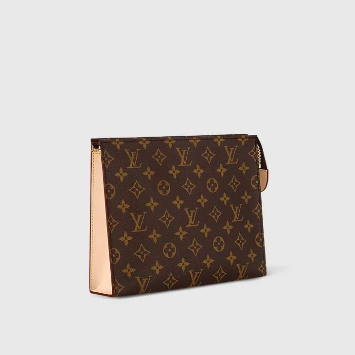 Made from Monogram canvas with natural cowhide-leather trim, the Poche Toilette offers a stylish way to carry personal necessities when traveling. Very convenient with its washable lining and well organized with its 2 patch pockets, the Poche Toilette is the perfect travel companion. The Poche Toilette closed with a zipper.