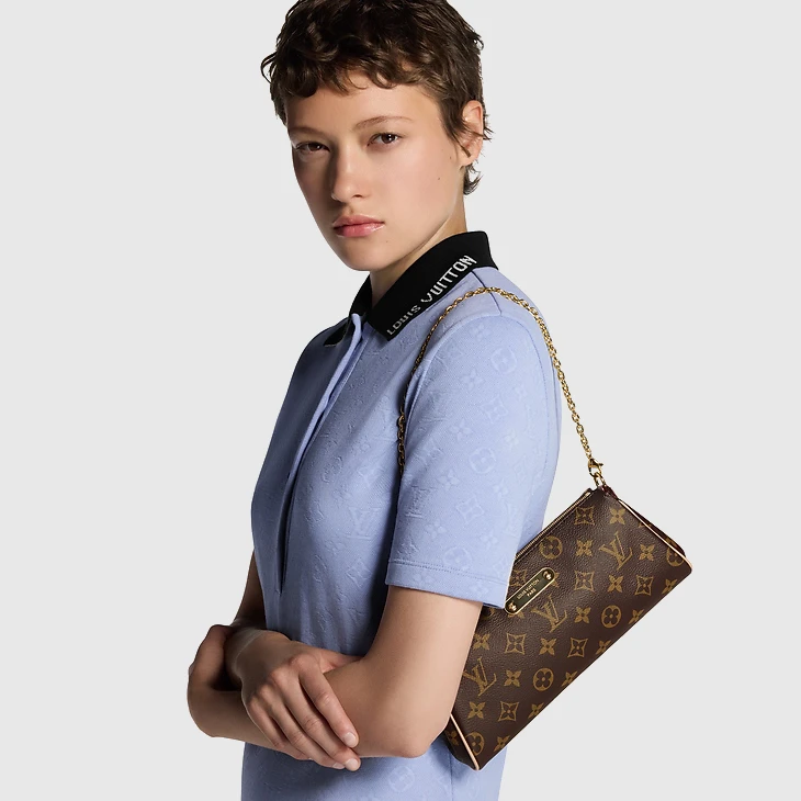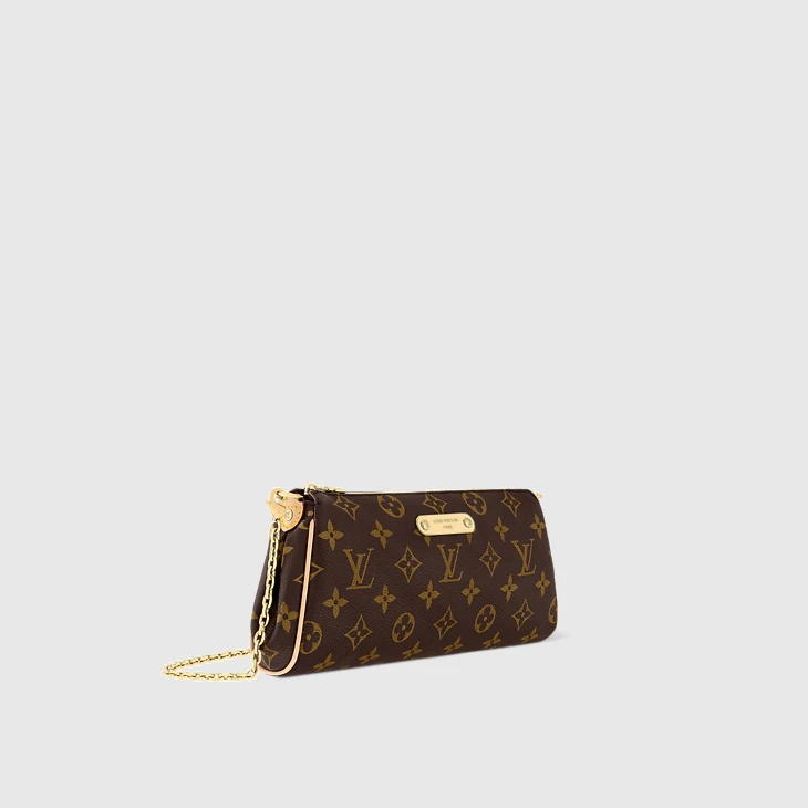 This elegant Pochette Eva is offered in the House’s signature Monogram canvas with contrasting leather trims for a refined finish. The versatile design is elevated with gold-toned hardware, including an engraved Louis Vuitton plaque that matches the removable chain. It is sized to store everyday items, including a compact wallet and makeup essentials.
