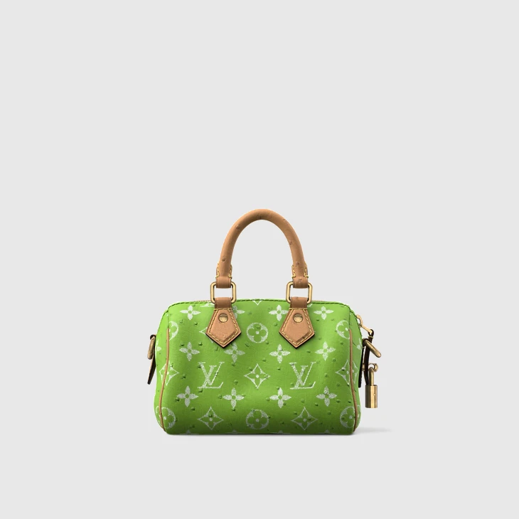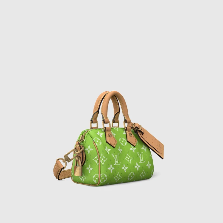 The smallest of the House’s emblematic Speedy bags, the Speedy 18 is made from ostrich leather with a colorful Monogram print. The pattern is rendered with a twill effect, as if it were printed on canvas. This requires a unique savoir-faire, given the challenging surface of the ostrich leather. A removable and adjustable strap enables cross-body wear.