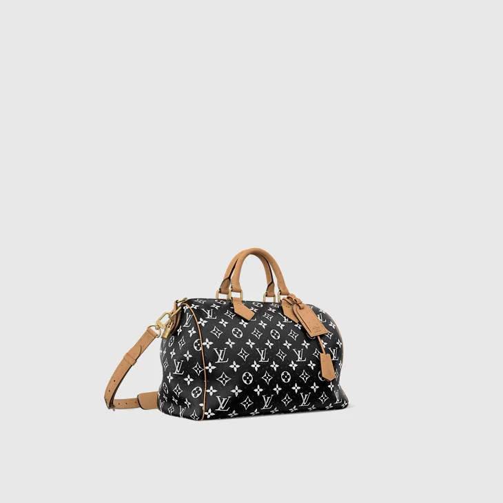 The luxuriously supple Speedy P9 40, with its slouchy silhouette, is made from ostrich leather with a Monogram print. The pattern is printed on the leather using a sophisticated silk-screen technique that reproduces the twill aspect of the Monogram on canvas. Lined in lambskin, the interior includes an inside trio flat pocket and a zipped pocket.