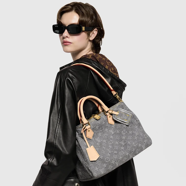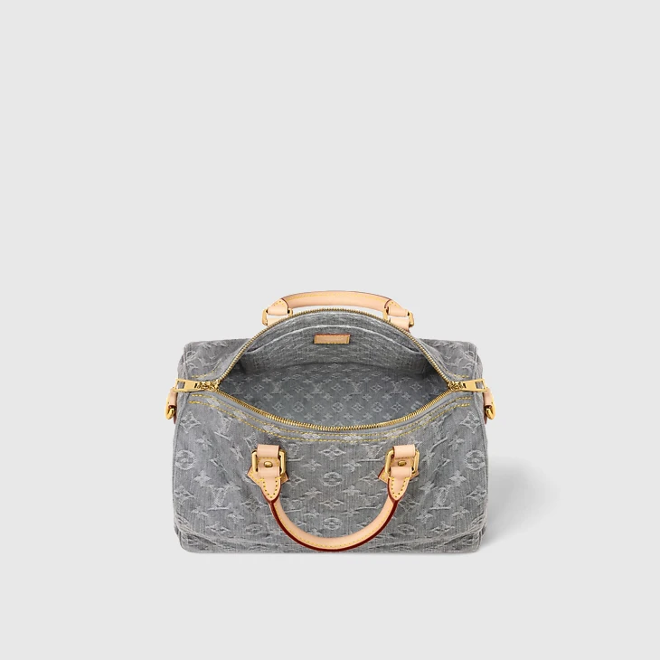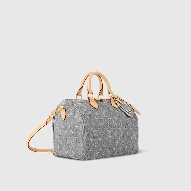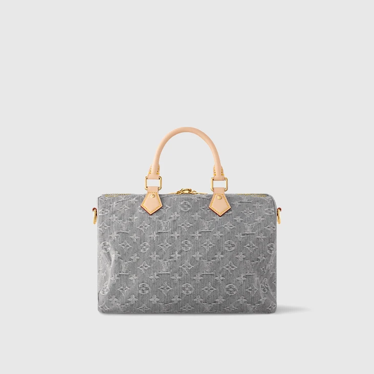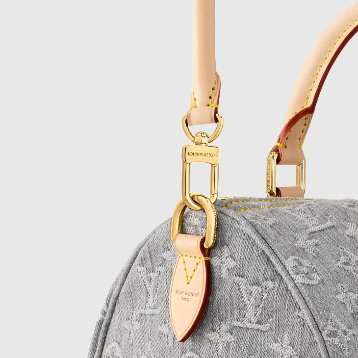 The Speedy Soft 30 is reimagined for the season with the return of the iconic 2005 Monogram Denim pattern. Crafted from organic cotton using a specialist LV bleaching technique, it is trimmed with leather and elevated with light gold-toned hardware. Signature details include a keybell and a removable name tag, both of which celebrate the House’s trunk-making heritage. Attach the toron handle for shoulder carry.