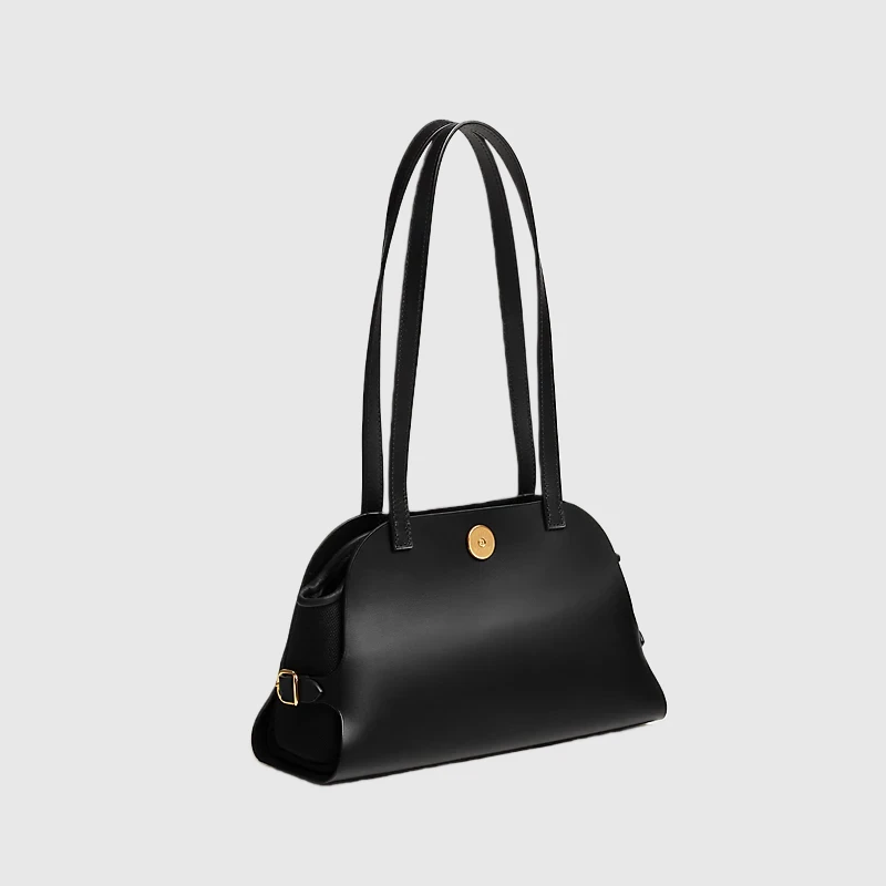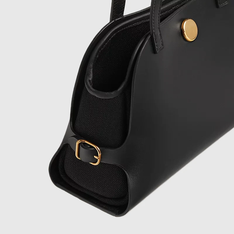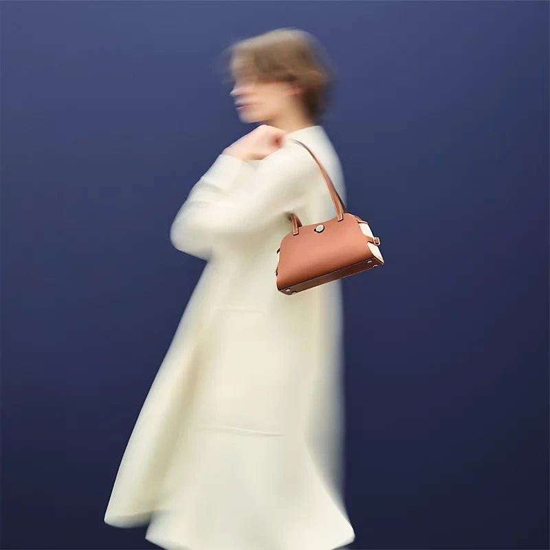 The Tablier Sellier bag draws inspiration from the essential protective garment worn by the saddler craftsmen of Faubourg Saint-Honoré: the leather apron. The neckband is transformed into handles, while the saddle nail, clasp, and side ties fasten the leather cover to conceal a removable canvas pouch. The clasp pivots like a cufflink to open and close the bag, enhanced by four identical studs on the bottom for both style and added protection. Worn on the arm or over the shoulder, this bag features clean lines and a lightweight construction, making it the perfect everyday companion.