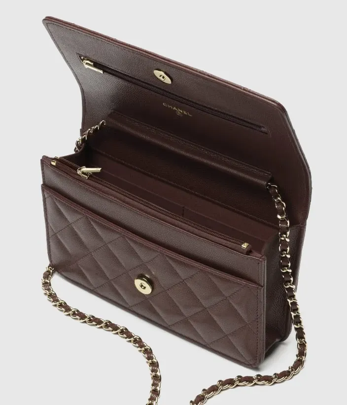 Shiny Grained Calfskin, Strass & Gold-Tone Metal
